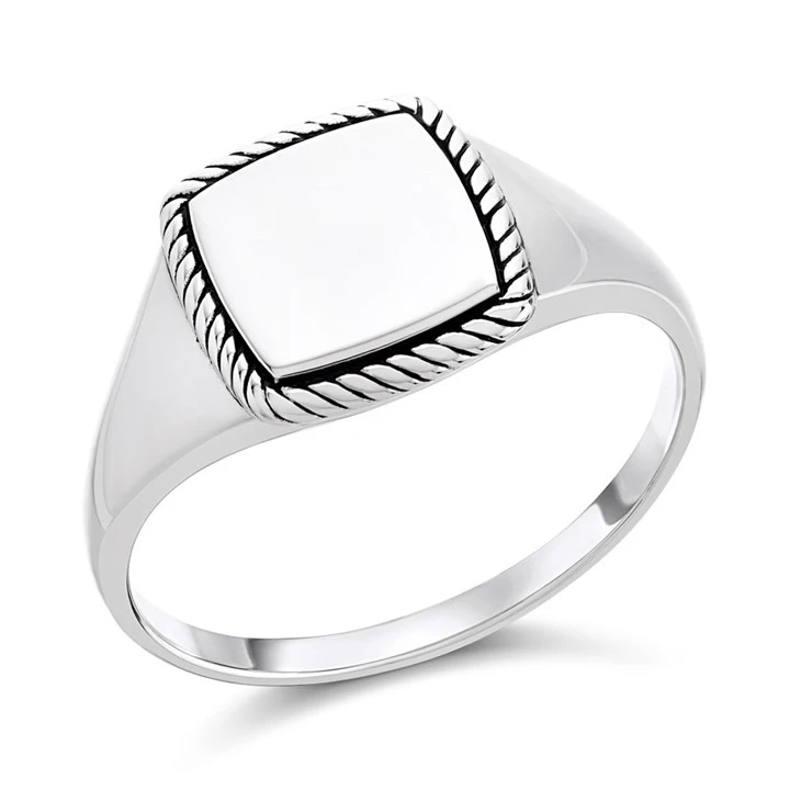 Silver Twisted Edge Signet Ring - F5119
