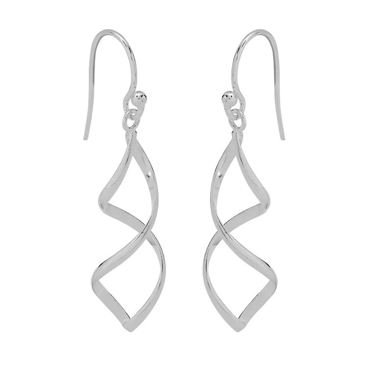 Silver Twisted Hook Wire Earrings - 44mm drop - F0597