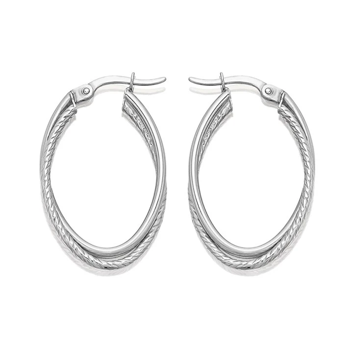 Silver Twisted Oval Hoop Earrings - 28mm - F13123