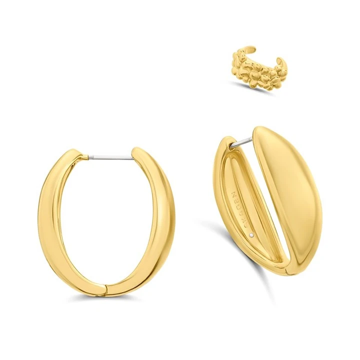 Skagen SKJ5003710 Gold Tone Hoop Earrings And Ear Cuff Set - A70297