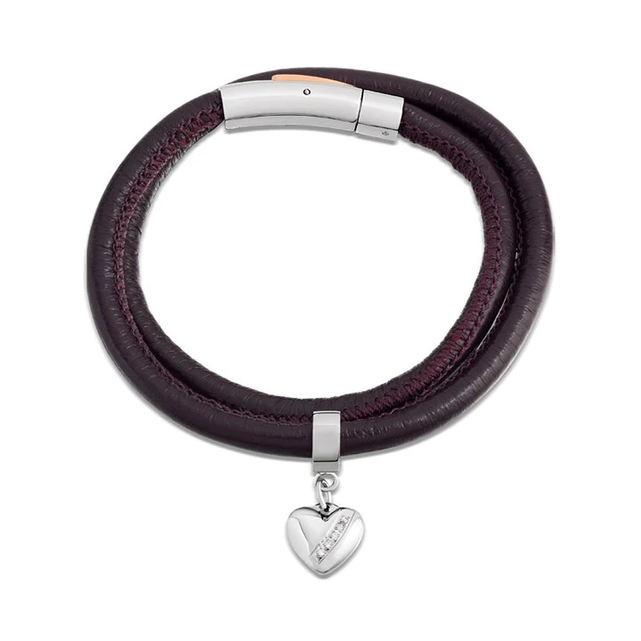 Unique Berry Leather Bracelet With Heart Charm - A7429