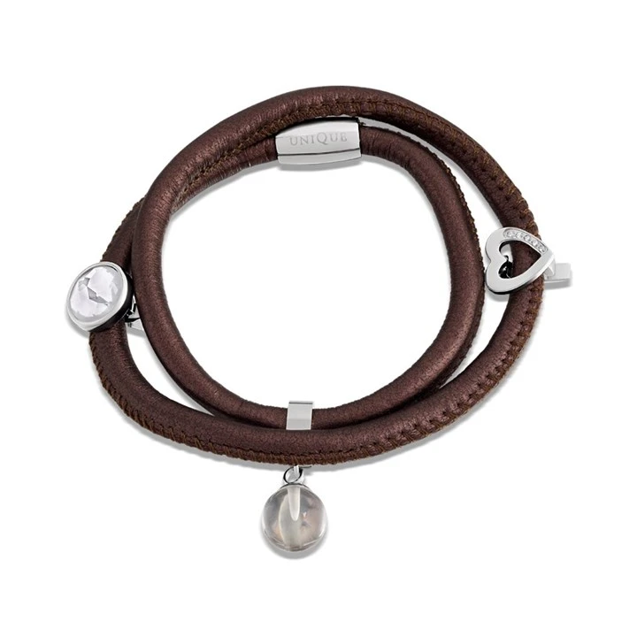 Unique Brown Metallic Leather Bracelet With Charms - A7427