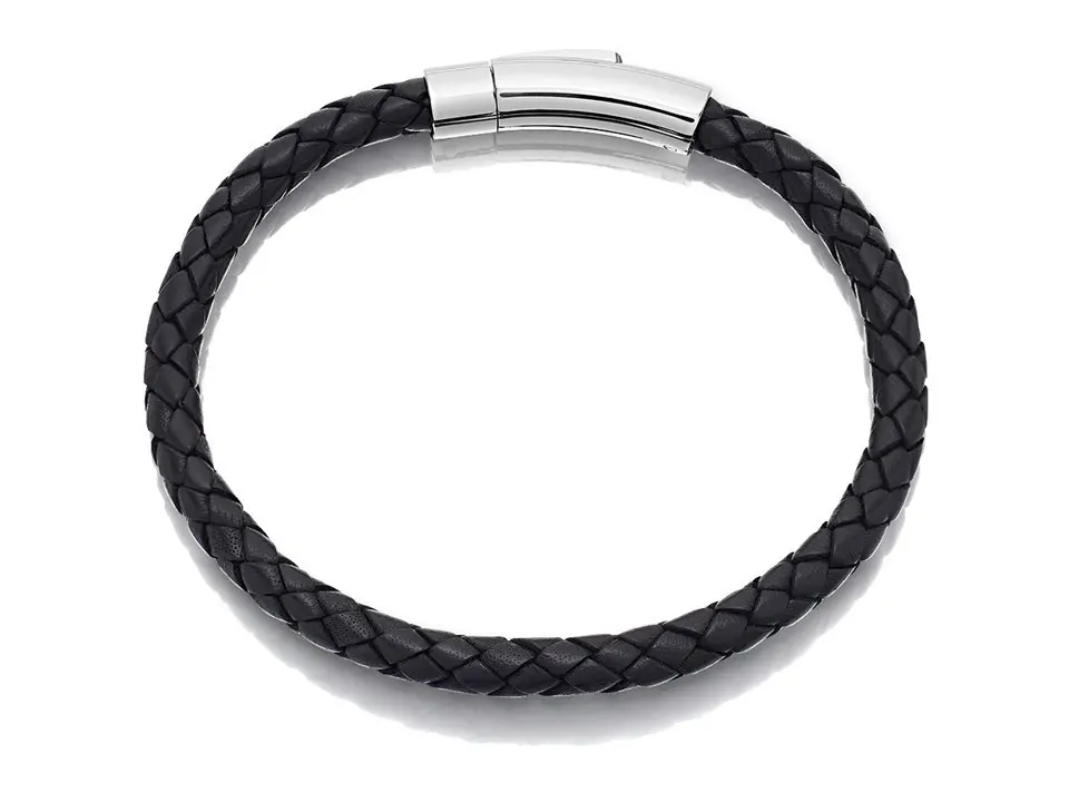 Unique & Co Black Leather Push Button Clasp Bracelet - A7310