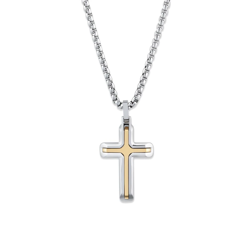 Unique Stainless Steel And Yellow IP Cross And Chain - A73147