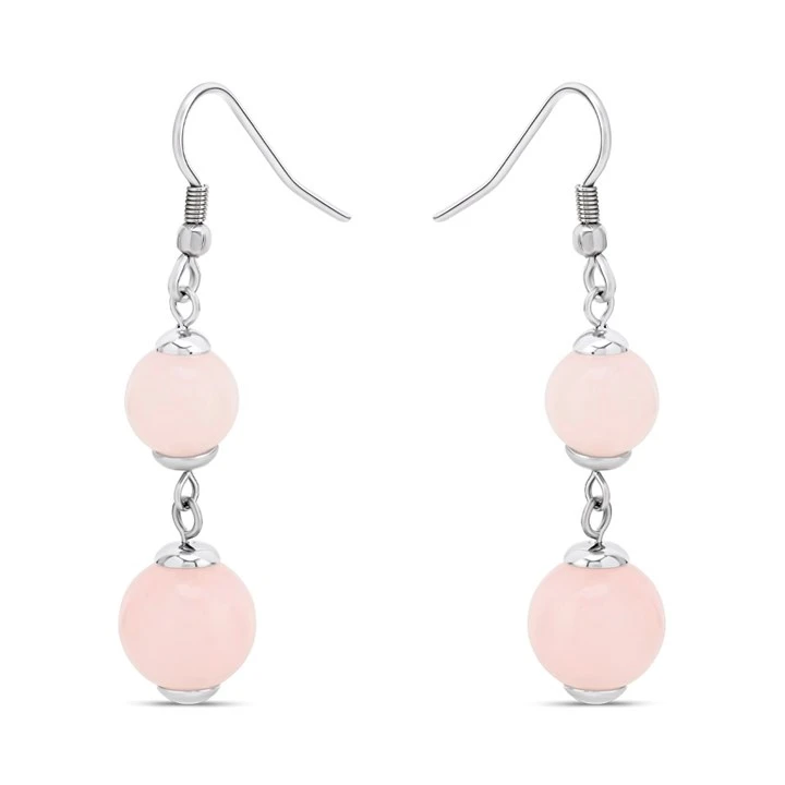 Unique Steel Drop Earrings-Pink Jade Elements - A7408