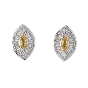 Reduced 9ct White Gold Yellow Sapphire And Diamond Stud Earrings - 15pts per pair - D94107