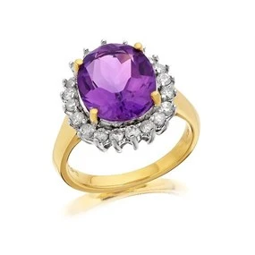 Reduced 9ct Gold 4.1ct Amethyst And 1/2ct Diamond Cluster Ring - D8432