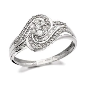 9ct White Gold Diamond Daisy Swirl Cluster Ring - 1/2ct - D6319 1/2 Carat Diamond Weight 1/2 Carat Diamond Weight
