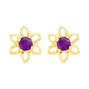 Last Few 9ct Gold Amethyst Flower Stud Earrings - 10mm - G0495