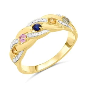 9ct Diamond And Multi Sapphire Chain Link Ring - D8138