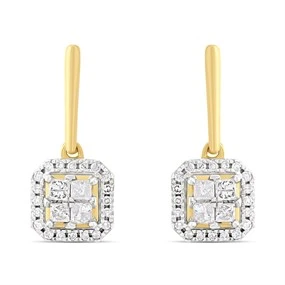 Reduced 9ct Square Princess Cut And Round Diamond Cluster Earrings, 1/3ct/pair - D96100 Matching Item Available Matching Item Available