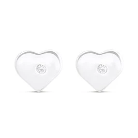 Little Star Silver Diamond Heart Stud Earrings - J83143