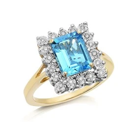 9ct Gold Blue Topaz And Diamond Cluster Ring - 10pts - D8420 Matching Item Available Matching Item Available