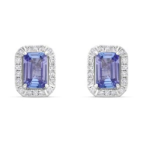 Save 9ct White Gold Tanzanite And Diamond Cluster Stud Earrings - D94118