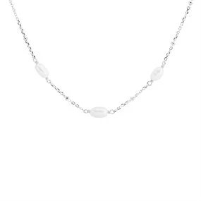 Silver Cultured Freshwater Pearl Station Necklace - F9513