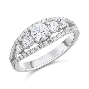 Silver Cubic Zirconia Halo Cluster Ring - F6090