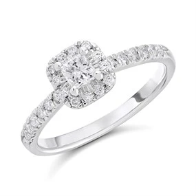 9ct White Gold Diamond Halo Cluster Ring - 1/2ct - D71214 1/2 Carat Diamond Weight 1/2 Carat Diamond Weight