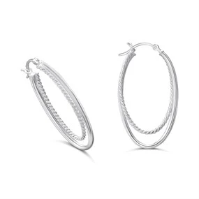 Silver Crossover Oval Hoop Earrings - F13150