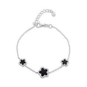 Silver Onyx CZ Station Bracelet - F14182