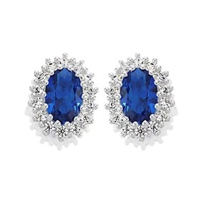 Silver Blue Cubic Zirconia Stud Earrings - F04159
