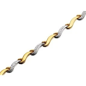 9ct Two Colour Gold Wave Link Bracelet - 7.5in - G6505