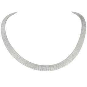 Silver Greek Pattern Collar Necklet - 17in - F8913