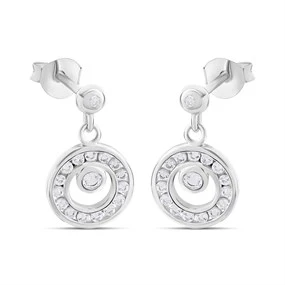 Hot Diamonds Silver Orbit White Topaz Drop Earrings - J0464