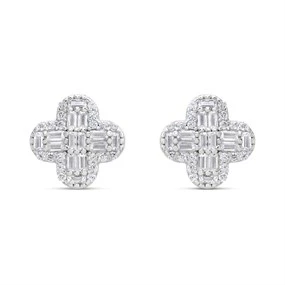 Silver Cubic Zirconia Halo Stud Earrings - 11mm - F04184