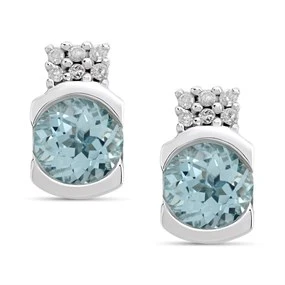 Save 9ct White Gold Blue Topaz And Diamond Stud Earrings - D9695