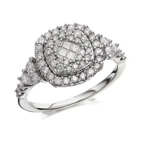 9ct White Gold 1 Carat Diamond Cluster Ring - D72116 One Carat Diamond Weight One Carat Diamond Weight