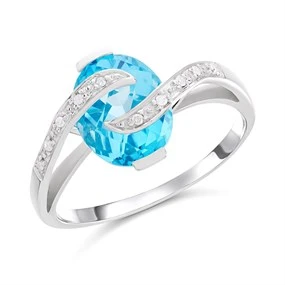Reduced 9ct White Gold Oval Blue Topaz And Diamond Ring - D63198