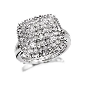 9ct White Gold 1 Carat Diamond Cluster Ring - D6618 One Carat Diamond Weight One Carat Diamond Weight