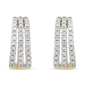 Reduced 9ct Three Row Diamond-Set Half Hoop Earrings, 1/2ct/pair - D9698
