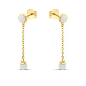 Last Few 9ct Gold Synthetic Opal Long Chain Drop Earrings - G1853