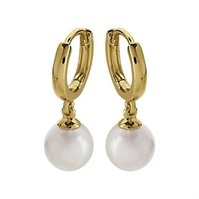 9ct Gold Freshwater Pearl Hoop Drop Earrings - 20mm drop - G3128