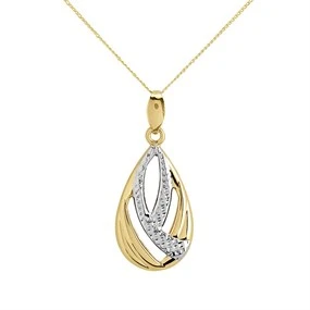 9ct Two Colour Gold Teardrop Necklace - R8810