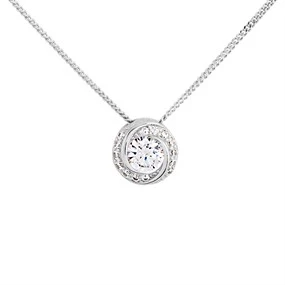 Silver Cubic Zirconia Twist Halo Necklace - F35156