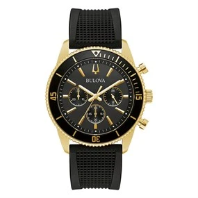 Bulova 98A250 Gold Tone Black Silicon Strap Watch - W09206 100m Water Resistant 100m Water Resistant