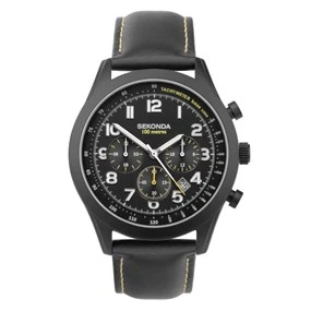 Sekonda 30112 Chronograph Black Leather Strap Watch - W31406 100m Water Resistant 100m Water Resistant